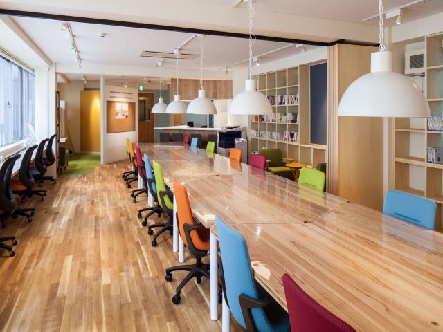 こだわりの温もりある内装で、まるでリビングかのように一人一人が仕事や勉強にリラックス&集中して取り組むことができます。