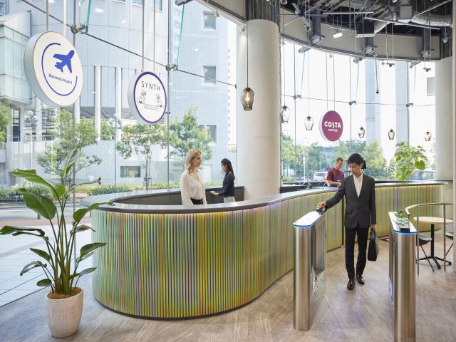 大阪駅・梅田駅から地下通路で直結、好立地のシェアオフィスSYNTH(シンス)。ご利用の際は、コーヒースタンドコルテ横の1階シンス受付にて”TIMEWORK”の利用とお伝えください。 皆さまのご来館をお待ちしております。