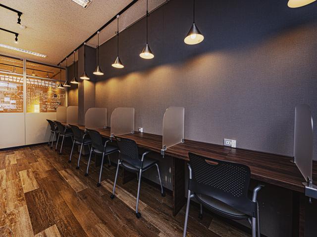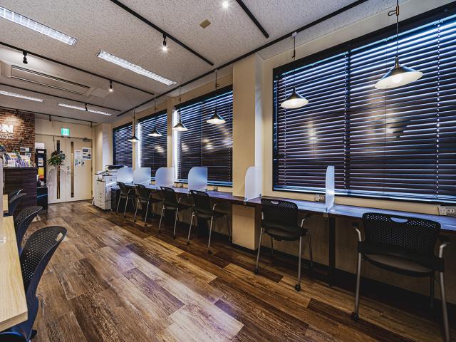 JR大船駅から徒歩5分、湘南モノレール大船駅から徒歩3分とアクセス良好です。落ち着いた雰囲気の室内に、ワイドなデスク、デザイナーズチェアをご利用いただけます。PCモニターや、充電器などを無料で貸し出ししております。