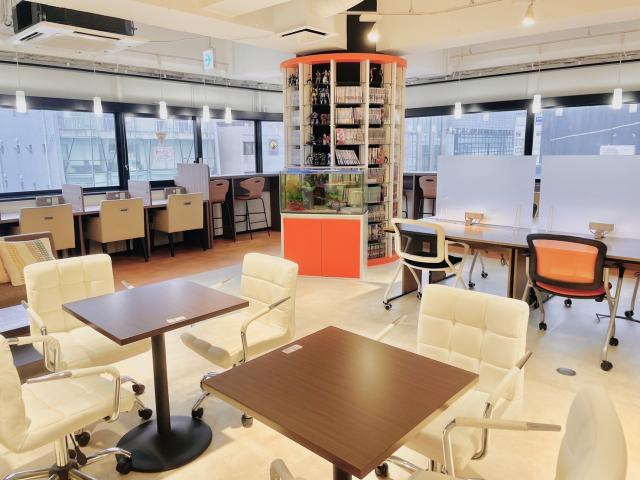 9階で開放感のあるワンフロアで、カフェのようなオープンスペースから集中するスペースまでエリアが分かれているので、お仕事やお勉強の方などお客様の利用によって席をお選びいただくことが出来ます。天神という立地で足を運びやすく、貸出物も豊富に揃えており出張の方にもおすすめです。本の電子化が出来るサービスも当店の人気のひとつです。