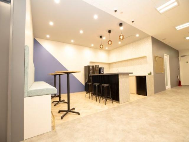 ゆったりソファがあるラウンジスペースとお一人で作業ができる集中スペース、WEB会議に最適なフォンブース、カフェコーナーの4エリア。 食事はカフェコーナーにて軽食のみ可能です。